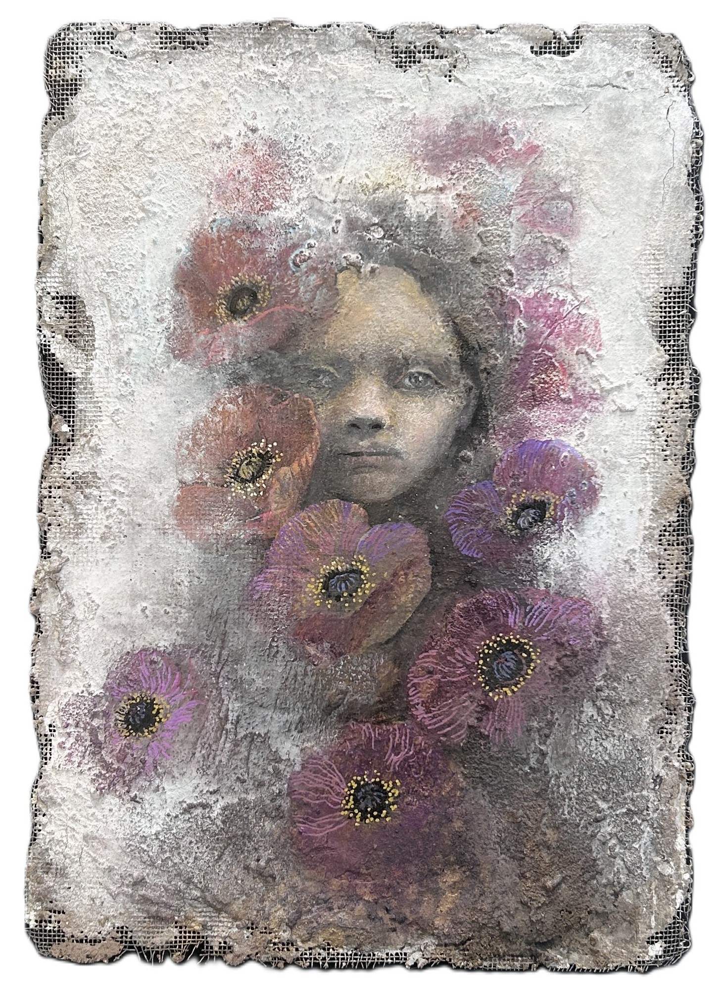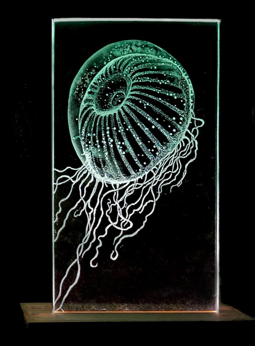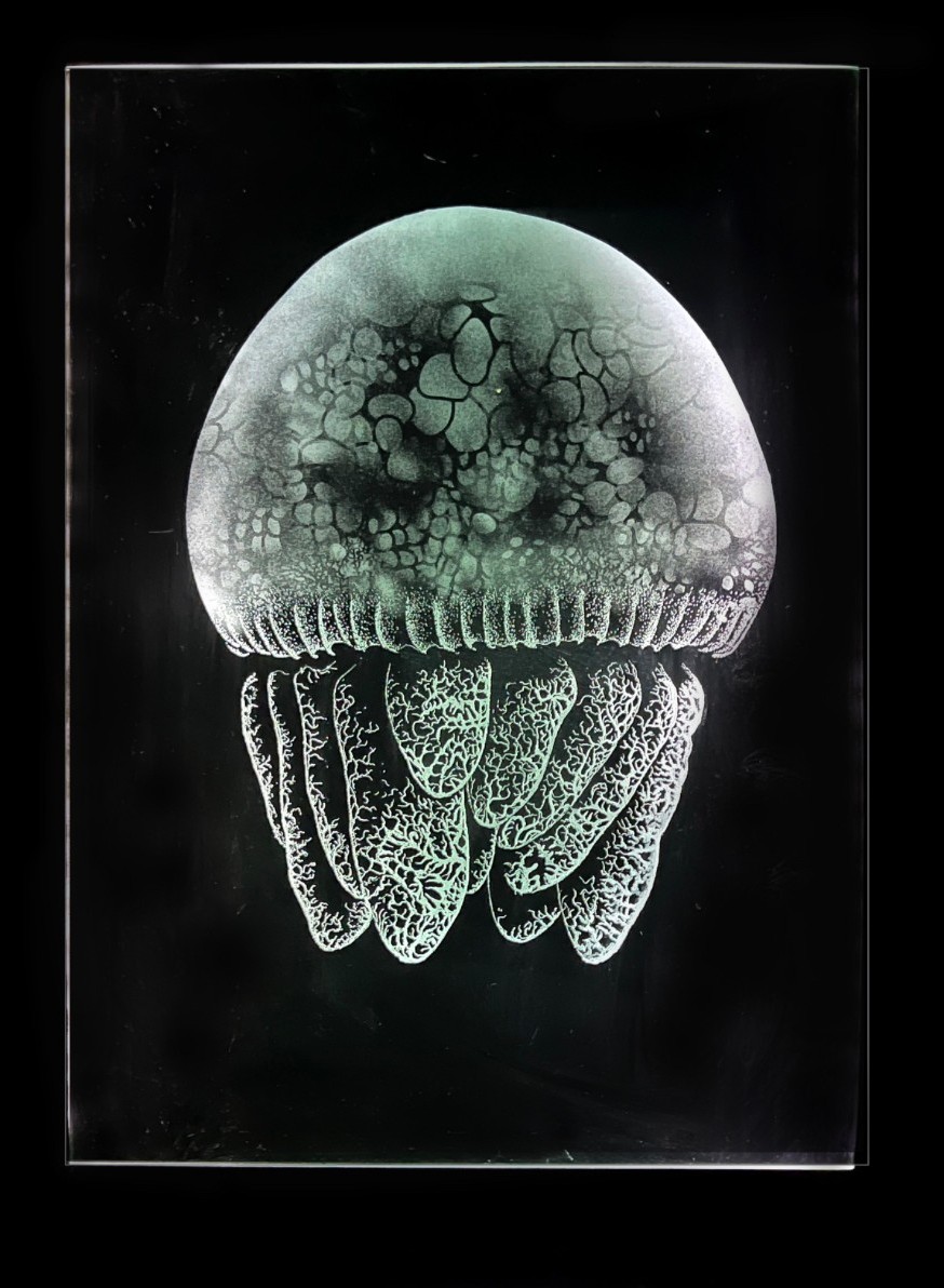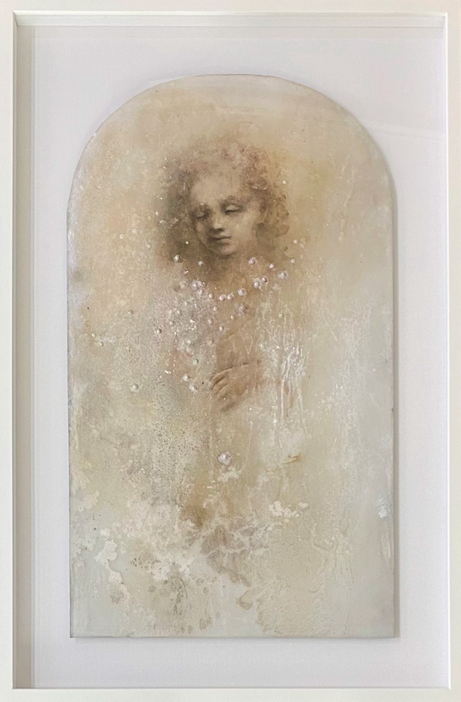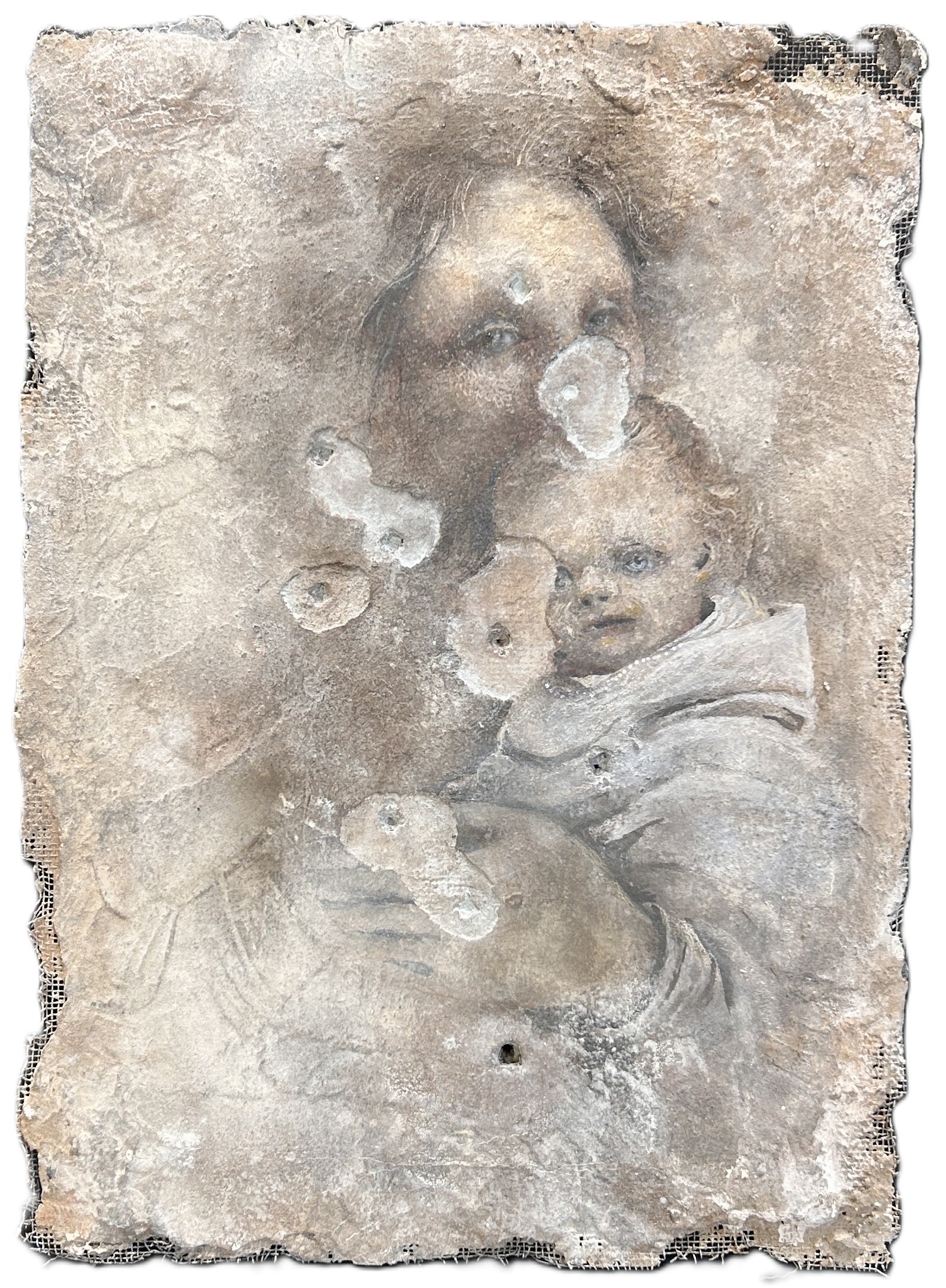 ミクストメディア、グラスエングレービング、フレスコ・セッコ、銅版画、銅板テンペラなど多様な技法で制作する。